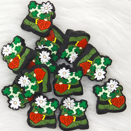 Green boots with flowers Silicone Focal Beads, Saint Patrick's Day Focal Beads
