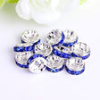 8mm Flat Round Metal Spacers with Rhinestones - Royal Blue / 100 pieces is backordered and will ship as soon as it is back in stock.